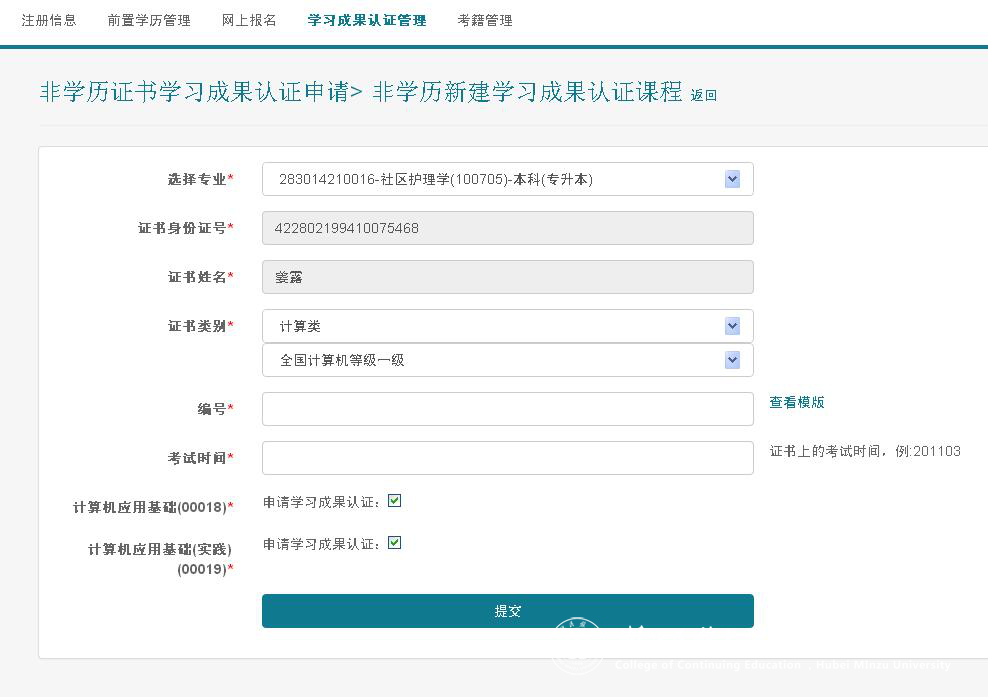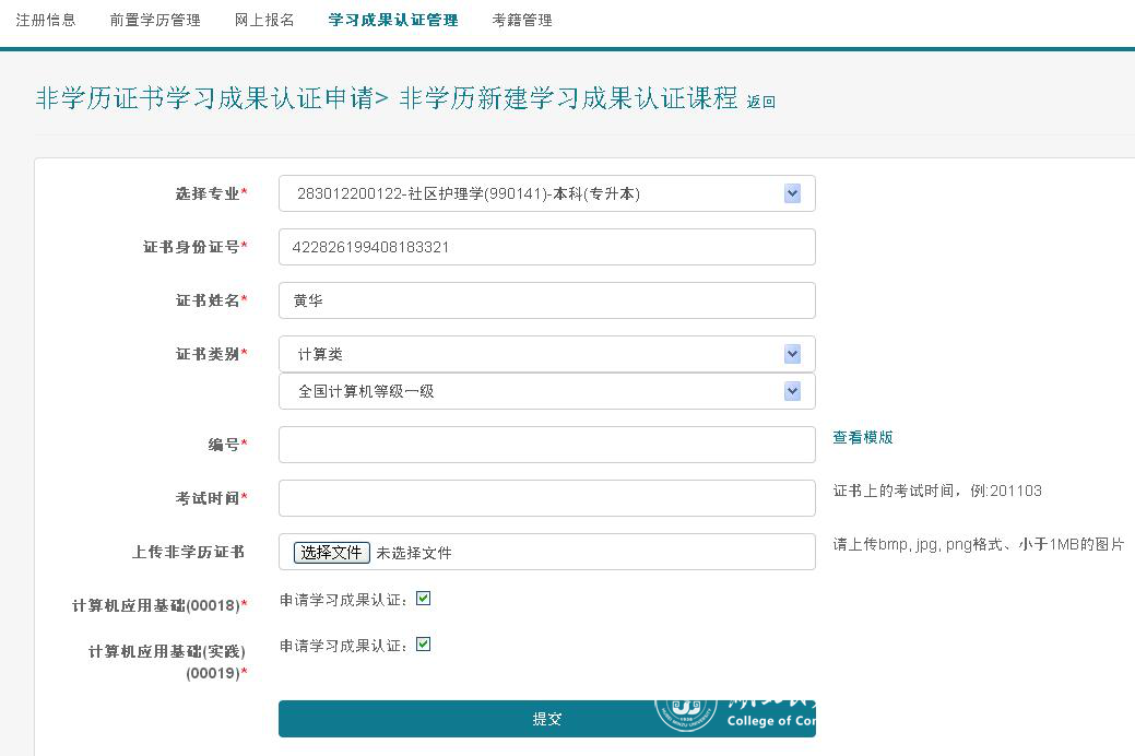 不用上传非学历证书,点击提交显示以下页面即可通过: