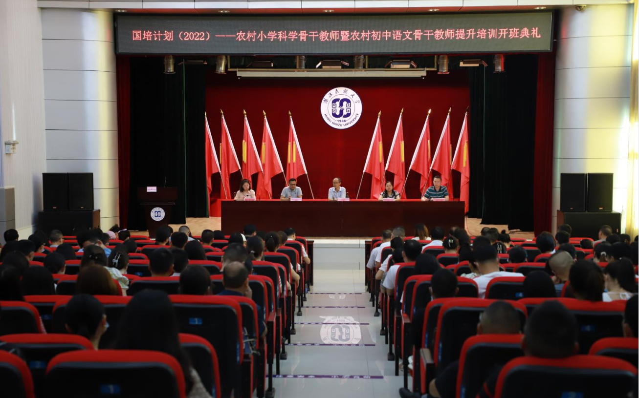 7月22日上午,我校承接的“国培计划(2022)”——农村小学科学骨干教师提升培训班暨农村初中语文骨干教师提升培训班开班典礼在学校行政楼一楼会议厅举行。典礼由继续教育学院考试培训科杨斌科长主持,来自全省各市县100名农村小学科学课教师和100名农村初中语文课教师参加典礼。