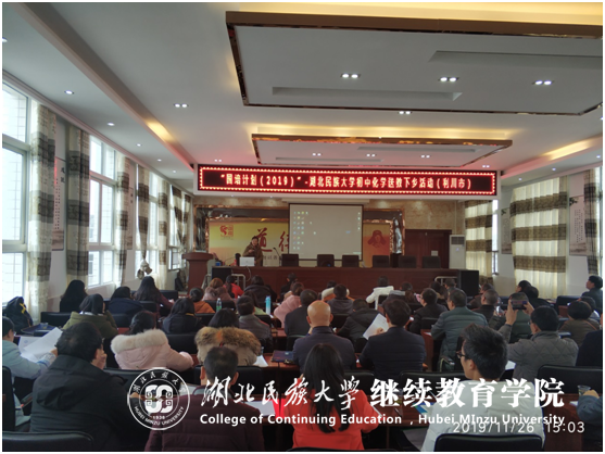 为充分发挥省级中小学专家团队的引领辐射带动作用,帮扶山区乡村中小学教师快速成长,提高山区乡村教师的整体教学水平,促进山区乡村基础教育均衡发展,11月中下旬,我校分别和咸丰县、宣恩县、利川市教育局、研培中心共同组织实施了湖北省“国培计划”(2019年)送教下乡专题培训活动,1200余名中小学教师参加活动。至此,我校承训的2019年10个国培、省培项目全部实施完毕。