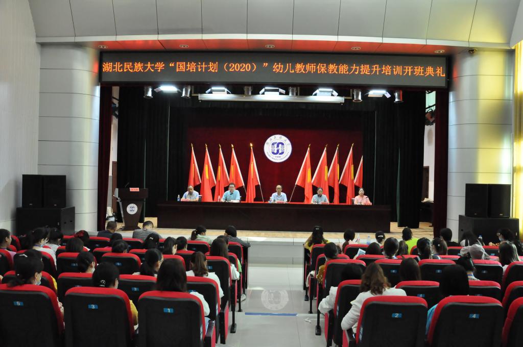 8月31日上午,“国培计划(2020)”——幼儿教师保教能力提升培训项目开班典礼在学校行政楼一号会议室如期举行。这是省教育厅安排我校今年承担的11个国培省培项目中第3期开班的项目。来自鄂州市、荆门市、孝感市、天门市的200名公办、民办幼儿教师参加开班典礼。
