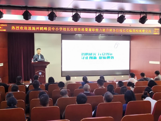 据悉,鹤峰县中小学校长任职资格暨履职能力提升培训由鹤峰县教育局主办,365电子娱乐官方网站承办,旨在引领鹤峰县中小学教育管理者提升专业能力,为鹤峰教育高质量发展提供高素质人才支撑。培训以“引领学校高品质发展”为主线进行综合设计,围绕“规划学校发展与学校规范化管理”“领导课程教学与促进教师成长”“学校文化建设及教育领导者心理调适”三大主题展开。培训共15天,分集中研修、省外研学、总结提升等三个阶段实施。集中研修阶段已在暑期完成,本次培训为省外研学阶段。