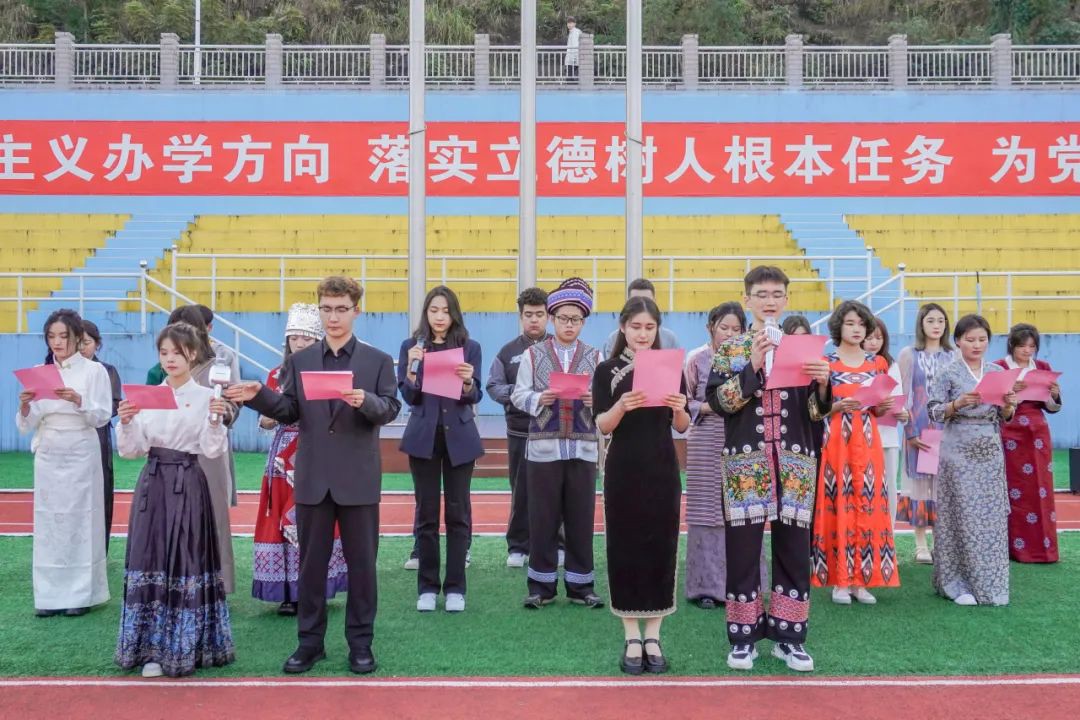 校国旗护卫队受邀参与本次活动,举行了庄严的升旗仪式。数学与统计学院学生代表陈佳馨作发言。