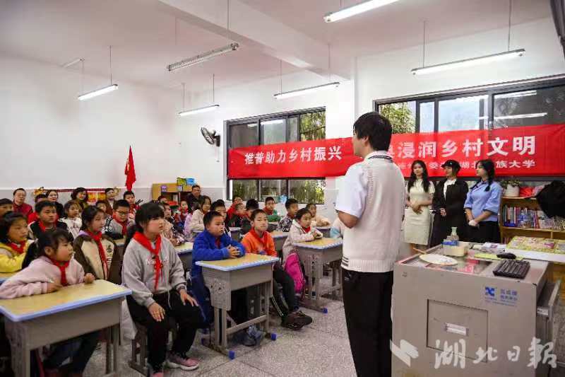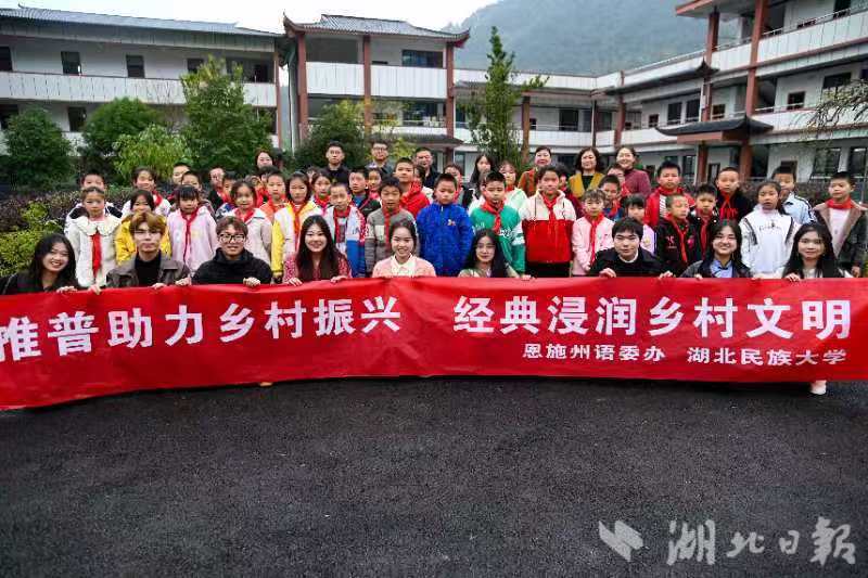 湖北日报客户端讯(通讯员王冰砚 任斐然)11月10日,为全面贯彻党的二十大精神,深入学习习近平总书记关于教育的重要论述和关于语言文字工作的重要指示精神,传承弘扬中华优秀语言文化,为乡村振兴战略服务,365电子娱乐官方网站、恩施州语委办联合在恩施市白杨坪镇麂子渡村小学开展“经典润乡土”普通话推广普及活动。