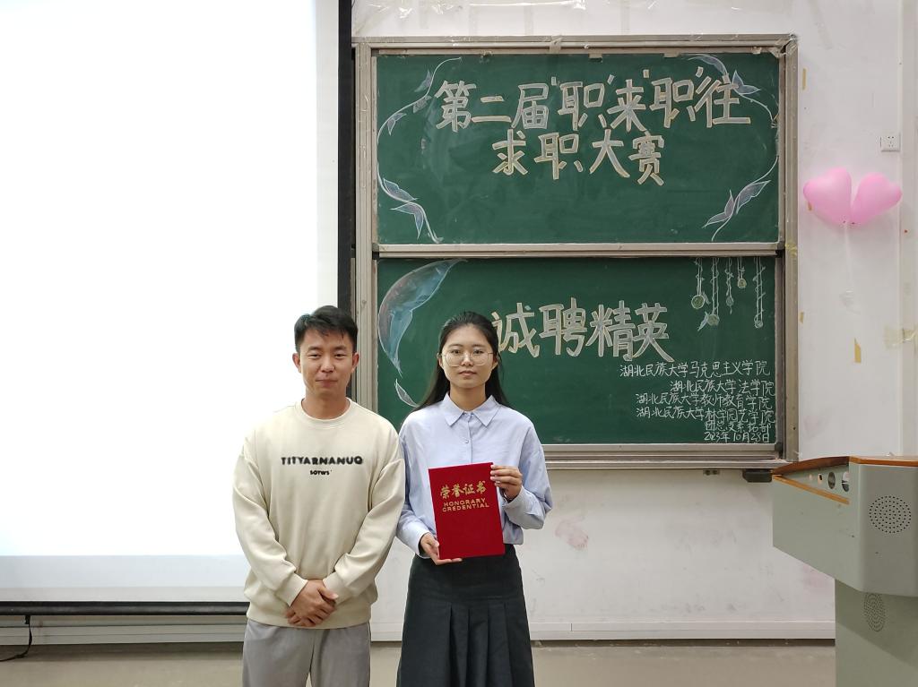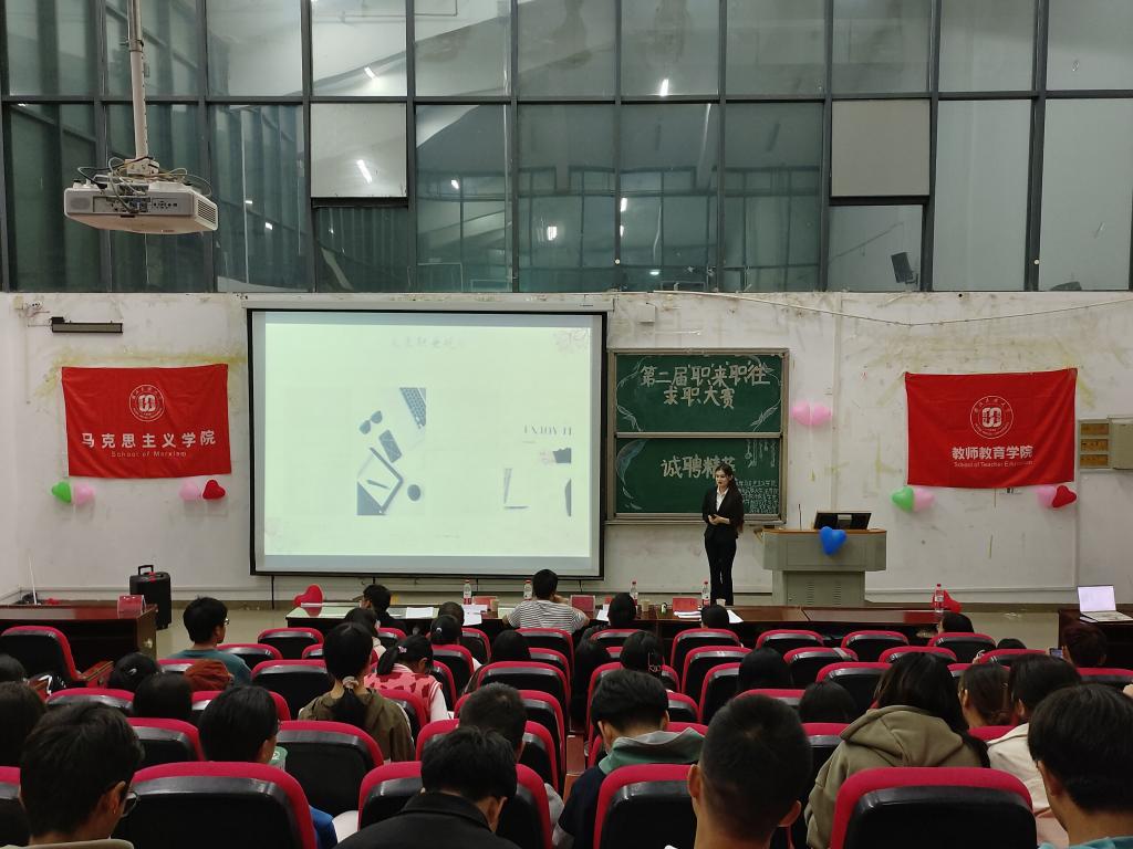 本网讯(通讯员 肖倩娥)为了增强大学生职业规划意识、创业意识,竞争意识,引导广大学生自觉树立正确的成才观、择业观和就业观,教师教育学院、法学院、马克思主义学院、林学园艺学院团总支素质拓展部联合举办第二届“职”来“职”往求职大赛,决赛于2023年10月28日下午七点整在修远楼5B404举办决赛,教师教育学院团总支书记李志刚、研究生处辅导员向鑫、马克思主义学院专职教师姜素凤、林学园艺学院团总支书记刘蒙恩参加了本次决赛。
