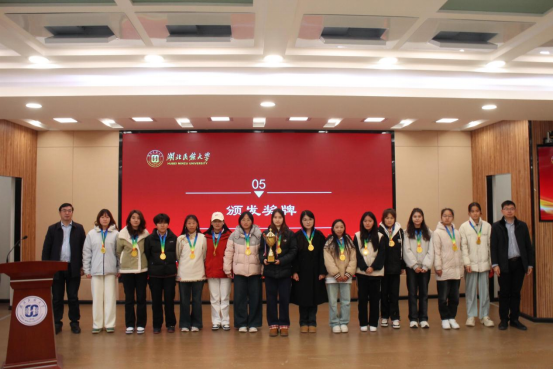 本网讯(通讯员 饶印思 邓紫靓)为期一个多月的“阳光体育文化节”足球比赛圆满落下帷幕,教师教育学院“小石榴”足球队取得历史性突破,不仅女子组在比赛中力压群雄,并且男子组在角逐中一举夺魁,双双斩获冠军。2024年12月19日,学院在远程观摩室隆重举行表彰大会,学院党总支副书记曹骞、副院长邱世兵,学工办主任成润,辅导员李志刚、吾卜力、尼沙出席了会议。