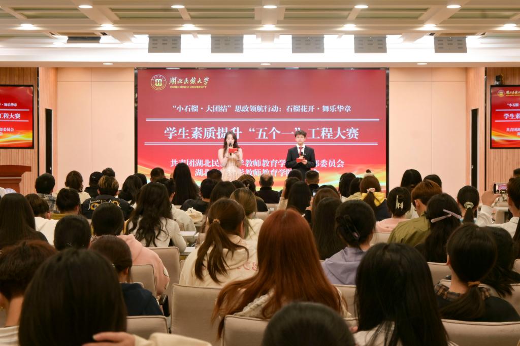 “小石榴·大团结”思政领航行动是365电子娱乐官方网站教师教育学院聚力打造的学生工作品牌,主要以“一条主线·二个阵地·三大工程”为育人思路:“一条主线”——以铸牢中华民族共同体意识教育为主线。持续举办24期“红石榴·团结讲堂”,让各族学生讲(或沉浸式演绎)自己及身边励志故事,将铸牢中华民族共同体意识走深走实,促进民族大团结。“两个阵地”——思政育人阵地、心理育人阵地。思政育人的赋能载体主要是“小石榴”一站式社区;心理育人的赋能载体主要是“小石榴”二级心理工作站。“三大工程”:一是学生素质提升“五个一”工程,包含一首歌、一支舞、一口普通话、一手字、一项技能。二是和谐公寓文化“四个一”工程,即寝室室友共同参加1项运动(娱乐)项目、共同制定1张寝室公约、共同签写1段祝福语、共同作出1个未来约定,用“小寝室”赢得“大局面”。三是“小石榴”志愿服务工程,包含“小石榴”推普志愿服务队、“小石榴”民族团结宣讲团、“小石榴”社会实践服务队等。
