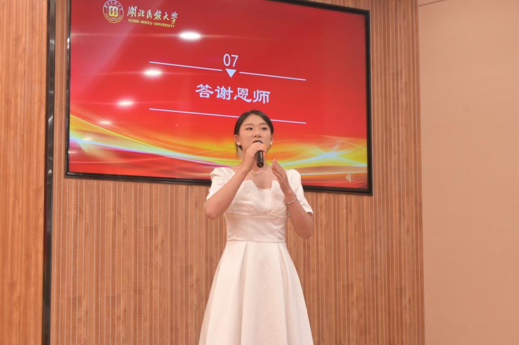 “长亭外,古道边,芳草碧连天。晚风拂晓笛声残,夕阳山外山……”杨明芳同学的一首《送别》将典礼推向高潮。