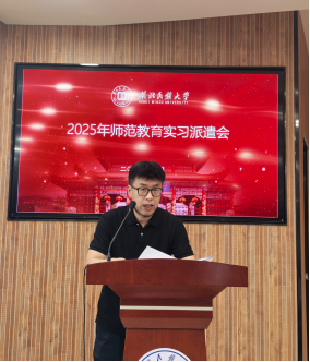 教师教育学院院长谭世明围绕师范教育实习工作提出要求。其一,强调师范教育实习应树立认证质量意识,以高标准把控实习各环节,确保实习质量符合师范教育认证要求,为师范生未来职业发展筑牢基础;其二,明确要构建师范教育协同育人机制,推动学校、二级学院、实习基地等多方联动,整合优质资源,形成育人合力,提升师范生综合素养;其三,提出“三个严格遵守”与“三个决不允许”的纪律要求,从行为规范、责任落实等层面为实习工作划定红线,保障师范教育实习顺利开展,切实维护实习秩序与师生权益。