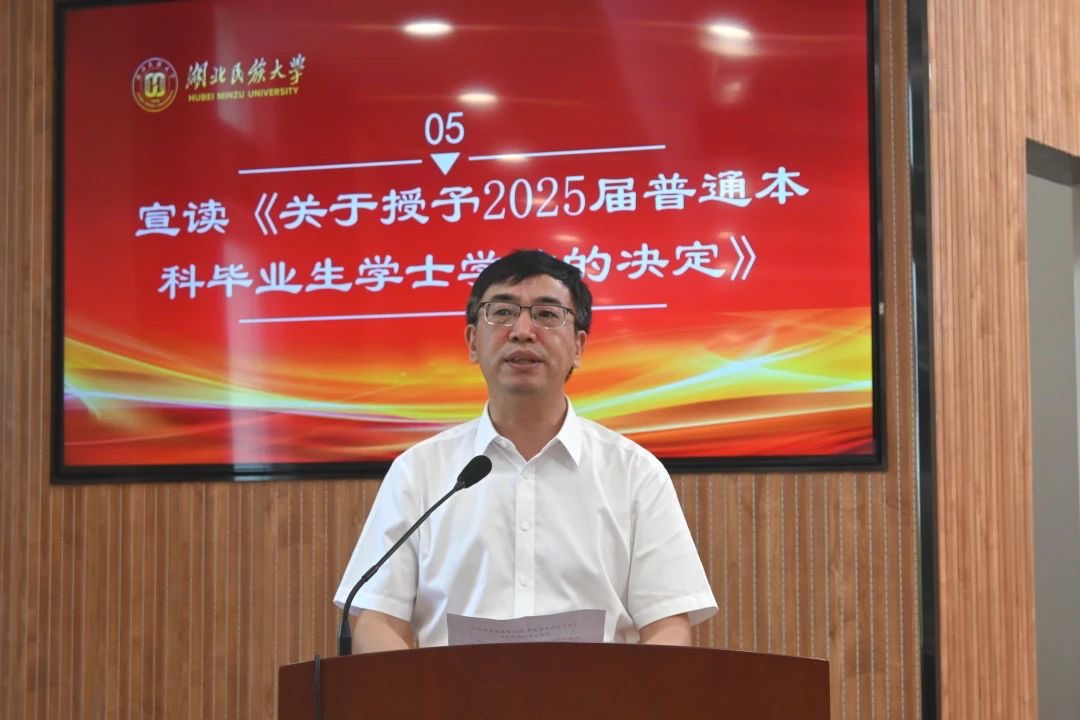 宁华宗书记代表学院向2025届毕业生致以最热烈的祝贺和最美好的祝福,希望毕业生将大学的点点滴滴揉成今后岁月里亲切的回忆,鼓励同学们坦坦然然向大学道别,轻轻松松奔赴人生的另一片星辰大海。宁华宗从不忘初心,教育是一场众人的托举;砥砺奋进,人生是一场坚韧的跋涉;志存高远,未来是一场热情的拥抱三个方面为2025届毕业生离别赠言,勉励他们怀揣梦想,心有大我,激情满怀,拥抱未来,用使命和担当、奋斗和坚韧、执着和开放书写无悔于青春、无愧于时代,无限于未来的大写人生。