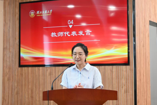 毕业生班主任代表李梦琪为同学们送上三个“成长锦囊”:脚踏实地,善用AI技术;永葆童真,以赤子之心理解世界;接纳失败,将挫折转化为进步的阶梯。她希望毕业生们未来在教育赛道上绽放独特光彩。