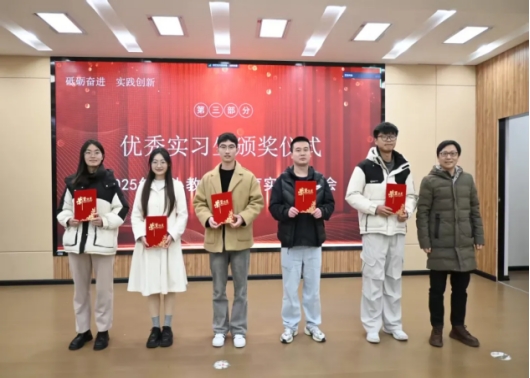 表彰环节,邱世兵、员恒强、卢浩宇依次为谢丽媛等优秀实习生颁奖,肯定他们在实习中的突出表现,鼓励大家继续深耕教育领域,共同见证同学们在实践中的成长与蜕变。
