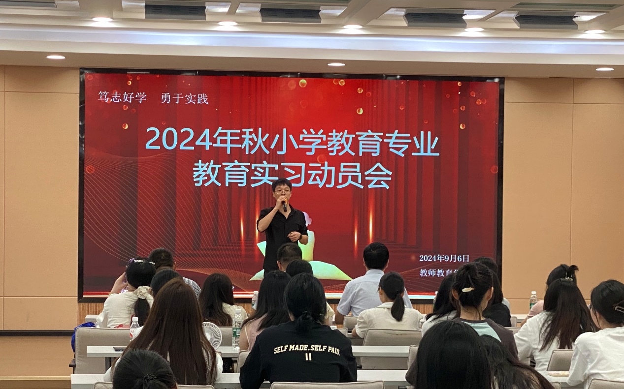 9月6日,小学教育专业实习动员大会在德智楼三楼远程观摩室隆重举行。学院党总支副书记曹骞、副院长邱世兵、协同育人办公室主任郑奇及班主任卢浩宇出席会议。会议由小学教育系负责人周向伟老师主持。