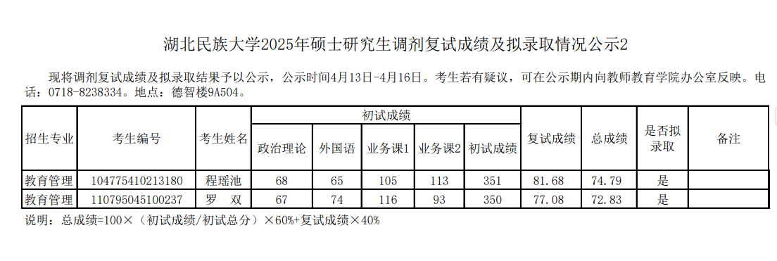 365电子娱乐官方网站2025年硕士研究生调剂复试成绩及拟录取情况公示2