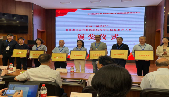 中央民族大学图书馆副馆长杨蔚宇主持开幕式,中国图书馆学会常务理事、高等学校图书馆分会副主任委员刘后滨、中央民族大学党委副书记邹吉忠到会致辞,中央民族大学发展规划处处长张焰、中央民族大学图书馆馆长刘明新分别发言,国家民委理论研究司二级巡视员戢广南讲话。颁奖仪式上,我馆组织参加的首届“团结杯”民族地区高校和民族院校学生信息素养大赛获优秀组织奖。