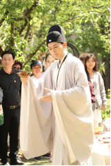 图书馆与音乐舞蹈学院联袂创作的《典籍里的恩施茶》在樱花园拉开帷幕。表演以校园景观为舞台,通过对我国茶文化发展历史脉络的系统梳理,将“茶廉文化”精神内涵融入叙事框架,以如盐在水、润物无声的方式有效完成了茶文化与廉文化的有机融合。舞者用壮美的舞姿讲述着武陵山脉里绵延千年的茶马古道密码,五方茶席悄然陈列,恰似五卷摊开的茶史长轴。盛妆的茶艺师手执铜壶,青衿学子捧定茶盏,演绎千年硒茶的风雅。弘廉湖畔茶艺师们冲泡的正是恩施的名片“恩施玉露”和“利川红”,向观众讲述“东湖茶叙”上的硒茶荣耀。孔子园中、初心茶园,学子们捧着茶盏,仿佛握住了一脉相承的文化基因,将廉政之风传遍校园上空。