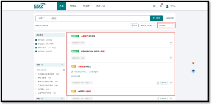 文献展示方式总共有三种,分别是“中文模式”、“原文模式”、“中文+原文模式”。