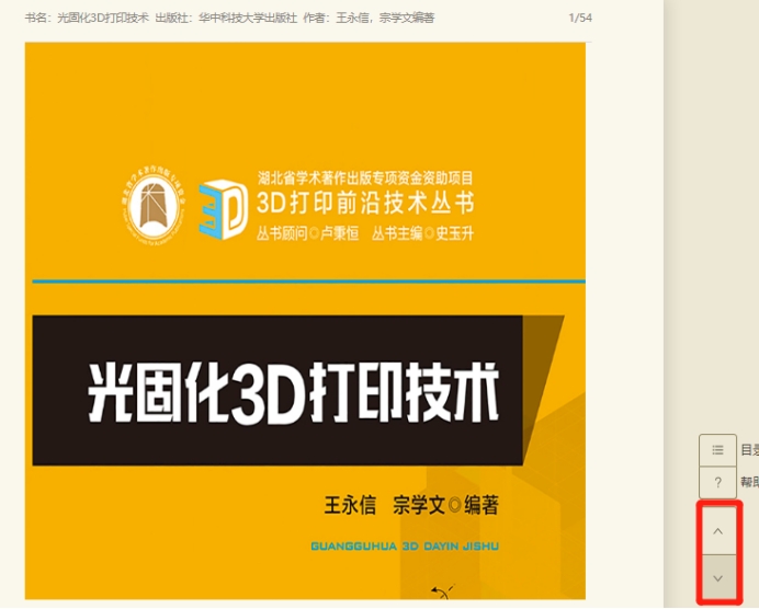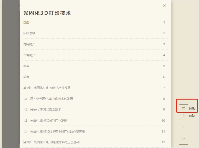 点击上下箭头按钮可进行跳页的操作,如下图。在下图中右侧的“目录”打开目录列表,选择章节,即可直接跳转到相应页面。