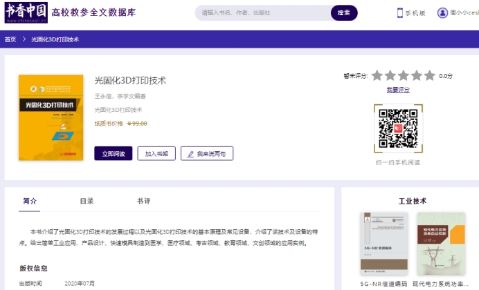 “365电子娱乐官方网站高校教参库”是A股上市公司中文在线(股票代码300364)特别为365电子娱乐官方网站推出的“集阅读、学习、互动于一体的互联网阅读创新数字图书馆”服务,为满足高校数字内容需求,中文在线高校教参全文数据库专注于提供数字版权的专业经典教材和高校指定教参,是学科导向型教参数据库。