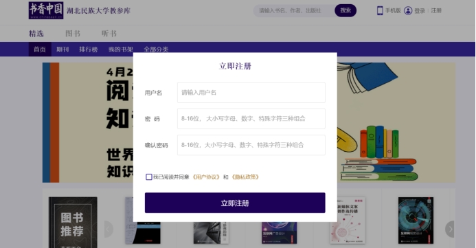 平台登录:读者可通过注册成功的用户名和密码/手机号验证码登录平台进行阅读。