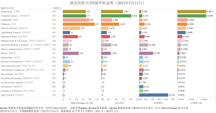 根据2023年5月11日ESI最新更新数据,数据涵盖10 年和 2个月期间:2013年 - 2023 年 2月。我校重点关注学科,本期Engineering工程学入围ESI学科前1%全球机构2179所,其中国内机构391所。Computer Science计算机科学入围ESI学科前1%全球机构704所,其中国内机构139所。