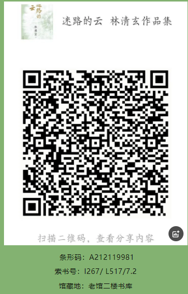 《迷路的云》是林清玄经典作品系列的第二十九册著作,由人民文学出版社出版,曾获得时报文学奖散文首奖。这本书是他用来献给还来不及看见它就去世的父亲和还在悲伤中的母亲,文中用词优美,朴素真挚,淡淡的忧愁隐于优美的文笔之中,让读者的心似乎也能随着作者的情在字里行间游走,慢慢沁润心田,犹如一杯小酌,又甘醇又酸涩。