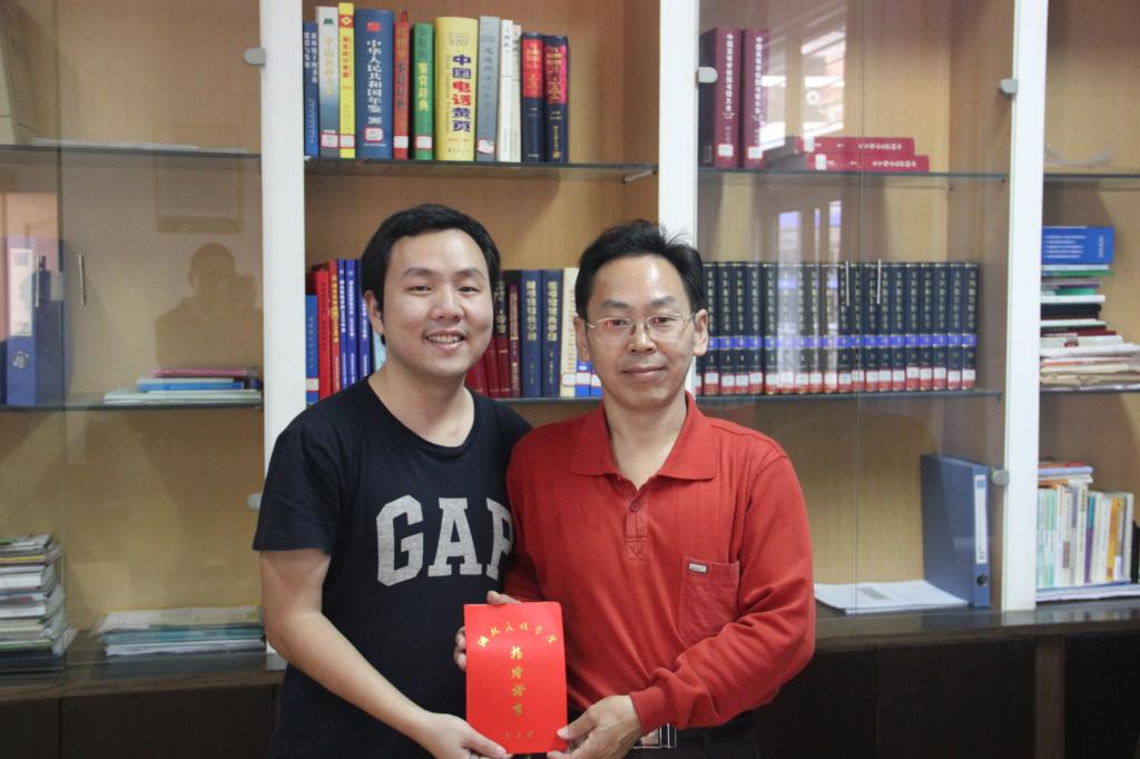 图书馆谭大友馆长向张欣先生(左)颁发捐赠证书