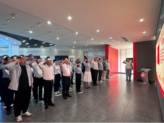 活动当天,全体与会党员在中共鄂西特委旧址红色教育基地纪念馆内重温入党誓词,通过观看珍贵的影像图文资料、实物等重温恩施抗战历程,回顾恩施军民在抗战中的英勇事迹,缅怀伟大先烈,传承红色革命精神。