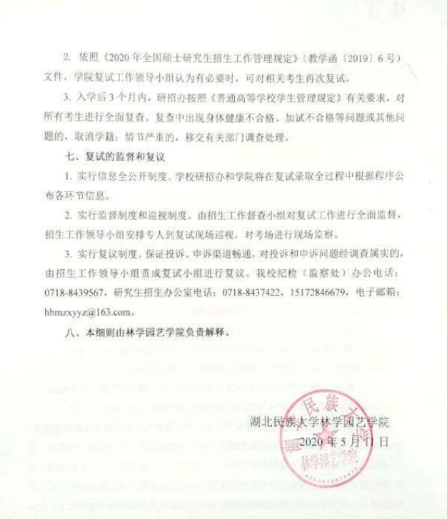 林学园艺学院 2020 年硕士研究生招生复试录取工作实施细则