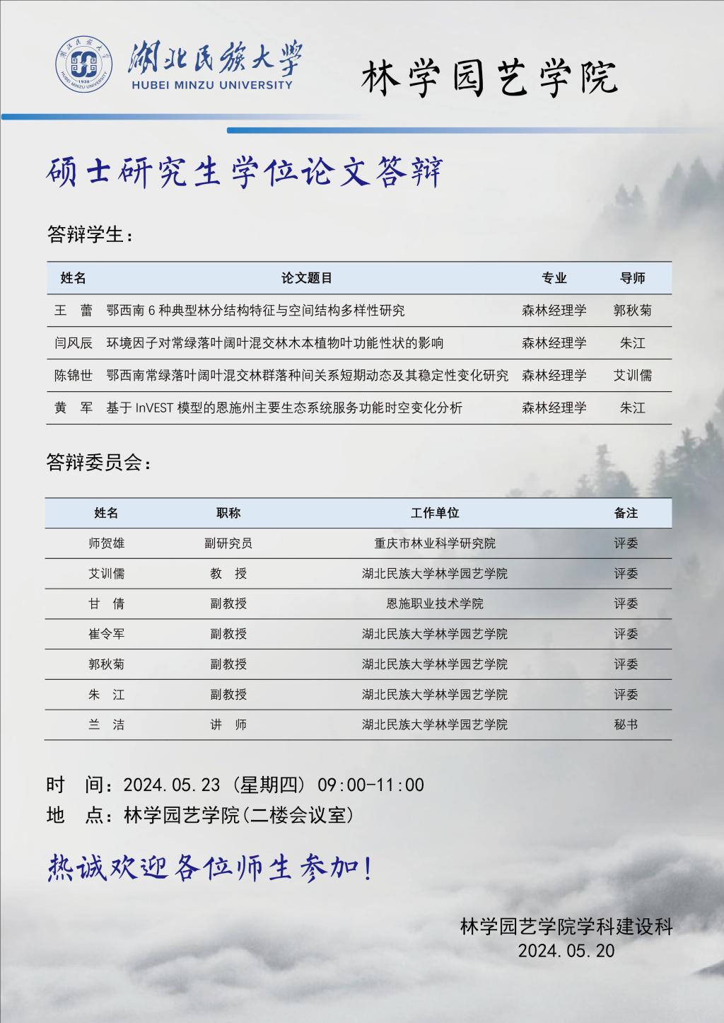 林学园艺学院2024届硕士研究生学位论文答辩公告(二)