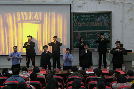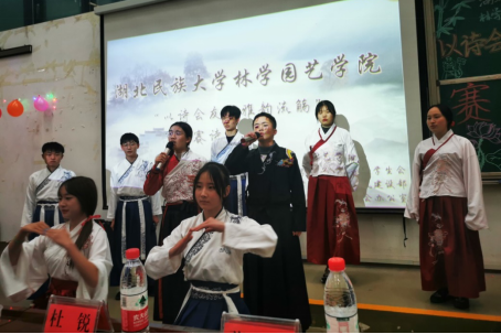 本网讯(见习通讯员 王思雨 孙浩天 安佳/文 见习通讯员 谭鑫鑫 郑爽 周欣岳/图)11月30日晚,我院在修远楼5B404教室顺利举行以“以诗会友,雅韵流觞”为主题的赛诗会决赛。我院党总支副书记赖申昊、团总支书记刘桃元、林学园艺专业班主任张强老师、团总支第一副书记杜锐、学生会主席徐颢文、心健委主席刘瑞曦、林通社社长刘鑫淼受邀出席并担任评委。我院大一班级和各大组织参加决赛,近百位学生到场观赛。