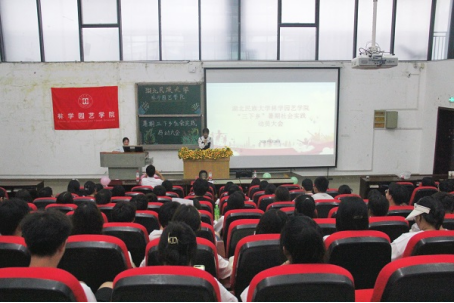 大会最后,团总支书记刘蒙恩宣布活动开始,他首先对前几位同学的讲话进行补充,强调细节问题及要求,要求每个团队和个人准备社会实践活动的材料以及图片进行记录。还强调每个团队都最好需要一个指导老师,注意活动的时间节点,希望每个班的每个学生都要积极得参与此次活动,并预祝本次活动能够圆满开展。