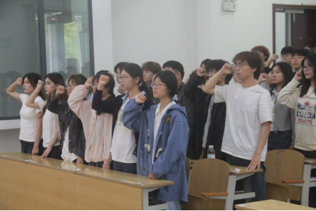 活动开始,全体成员肃立,面向团旗齐唱团歌,并在支部宣传委员带领下重温入团誓词,铿锵誓言彰显出新时代青年昂扬向上、奋发有为的精神风貌。