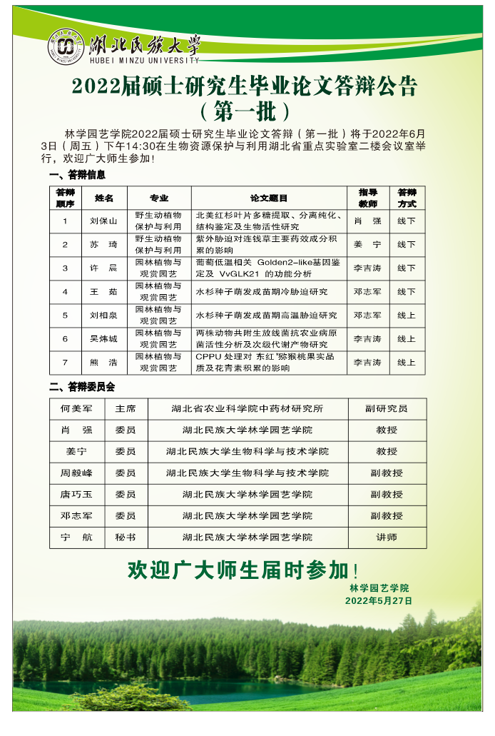 答辩公告(一)