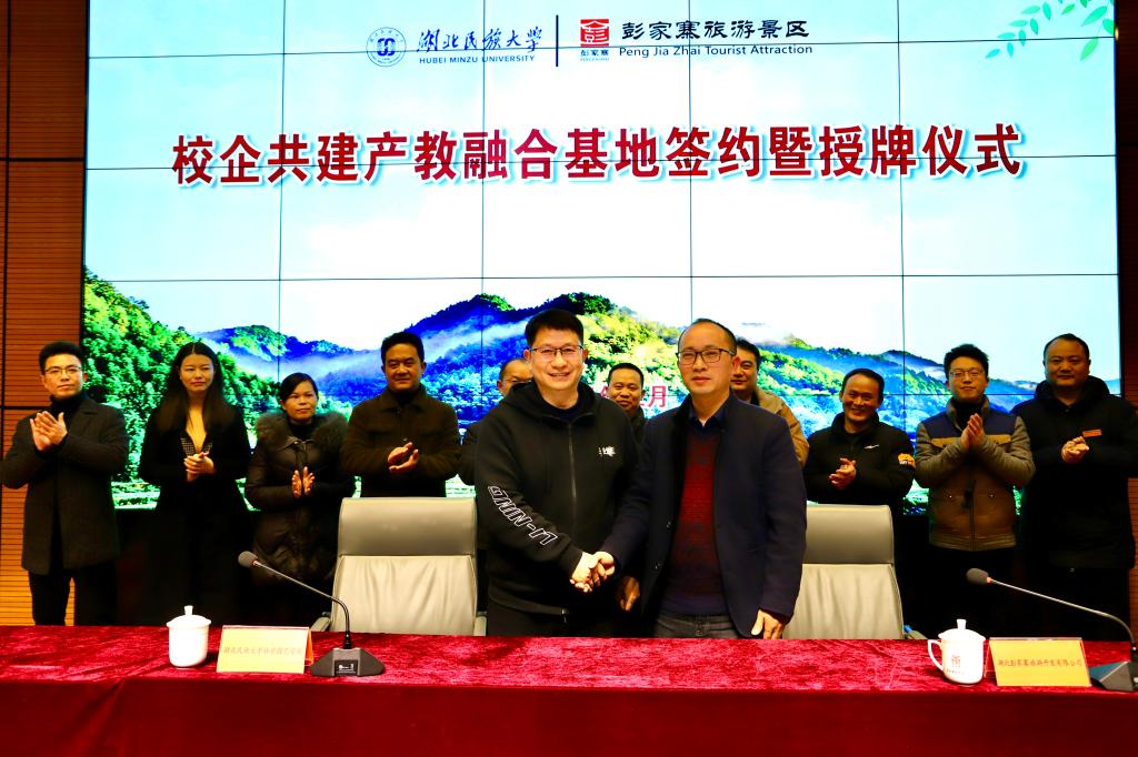 在实习基地签约仪式上,湖北彭家寨旅游开发有限公司总经理黄前亚和林学园艺学院院长艾训儒院长分别介绍了双方基本情况,并就两家单位未来的深入合作进行了展望,希望以本次签约为契机,双方共同推动产学研融合发展。随后,进行了现场签约和授牌仪式。