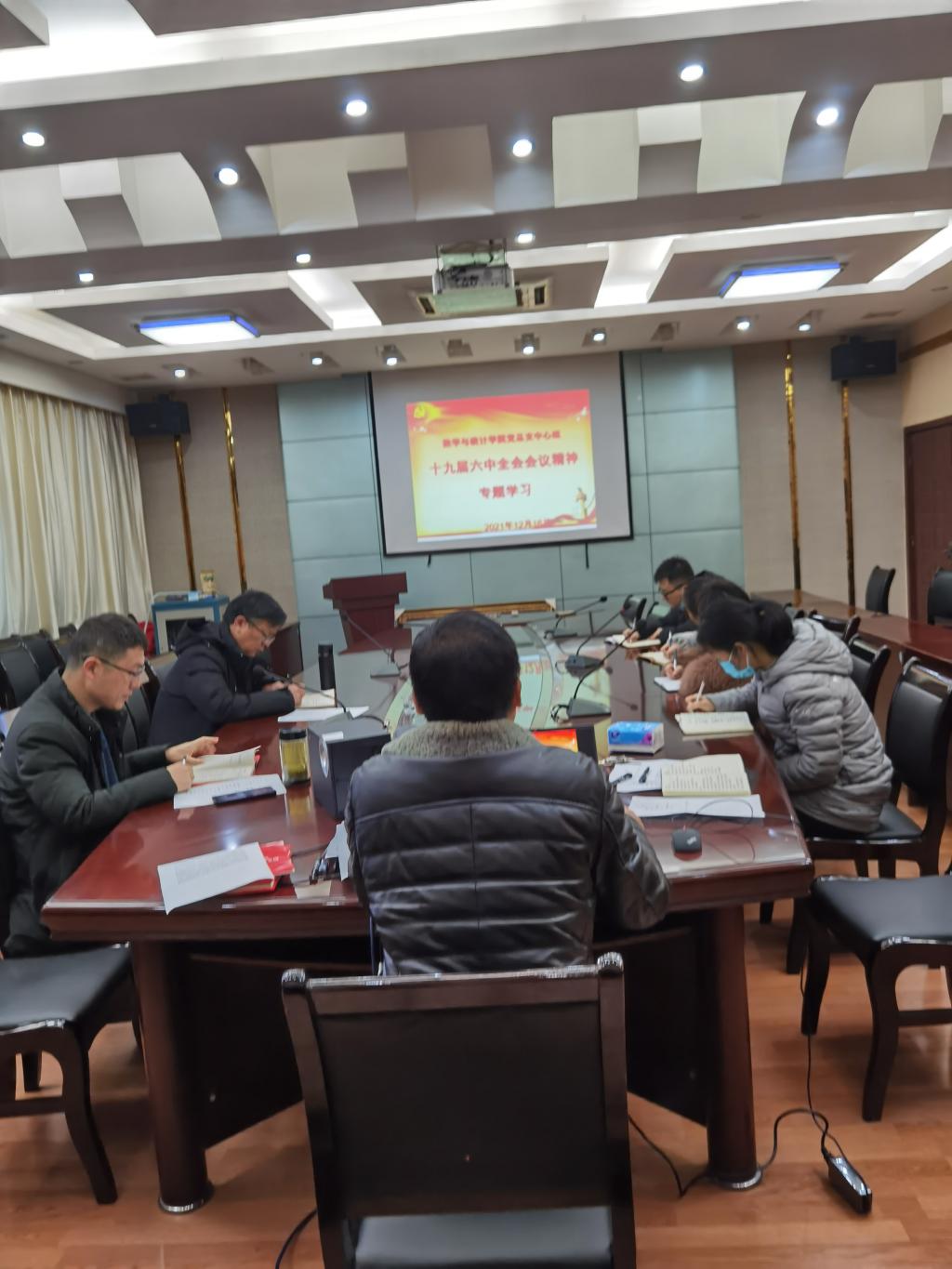 12月16日,数学与统计学院党总支在学院会议室召开理论学习中心组(扩大)学习会议,专题学习党的十九届六中全会精神。本次学习会议由党总支书记主持并作全会精神宣讲学习,学院党总支委员、各党支部书记、科室负责人参加学习。