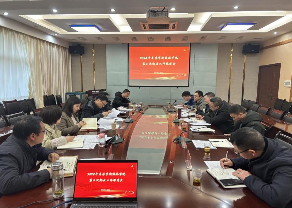 为全力推进2024届毕业生就业工作,2024年3月6日下午,数学与统计学院第二次就业工作推进会在学院四楼会议室召开。学校招生就业与校友联络处副处长杨磊蕾、就业指导服务中心主任刘阳、学院领导班子、各系主任、学生科辅导员、2020级和2021级班主任参加了会议,会议由学院党总支副书记郑敏主持。