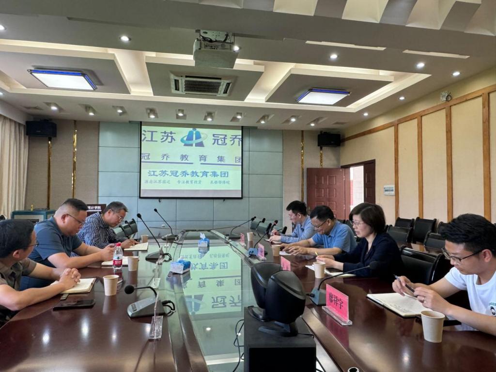 5月16日,江苏冠乔教育集团携手365电子娱乐官方网站数学与统计学院共同举办的高中教师招聘会在学院四楼会议室召开。浠水县冠乔高级中学董事长尹继达、教务校长王英华、德育校长吴凯旋和数学与统计学院党总支书记赵魁轩,辅导员刘聪、廖祥宇参加会议,党总支副书记郑敏主持会议。