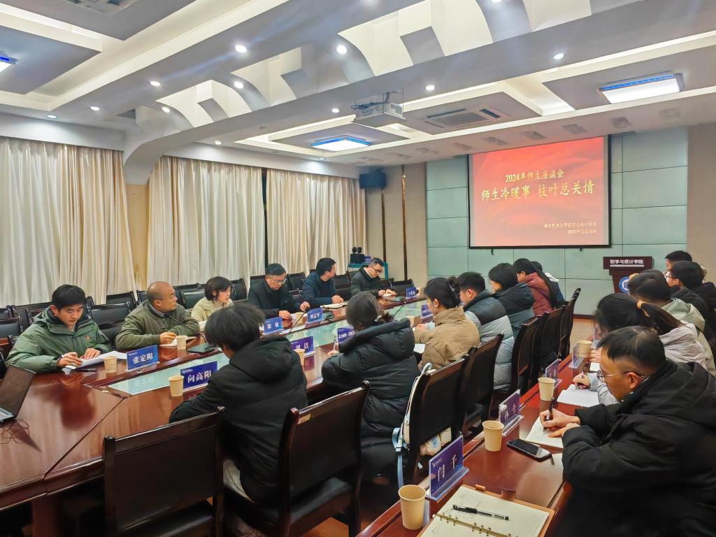 本网讯(记者 孙雯/文 孙雯/摄)12月16日晚,学校党委常委、副校长刘志军在数学与统计学院召开以“师生冷暖事,枝叶总关情”为主题的座谈会,校研究生处副处长胡盛,医学部党总支副书记许宗友,医学部学生第三党支部书记张定阳,数学与统计学院教师党支部书记王清龙,两个学院师生代表参加会议, 数学与统计学院党总支副书记郑敏主持会议。