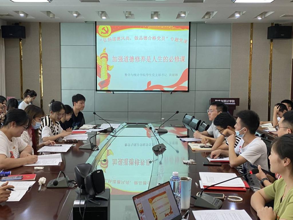 数学与统计学院学生党支部书记黄丽娜同志上党课——《加强道德修养是人生的必修课》