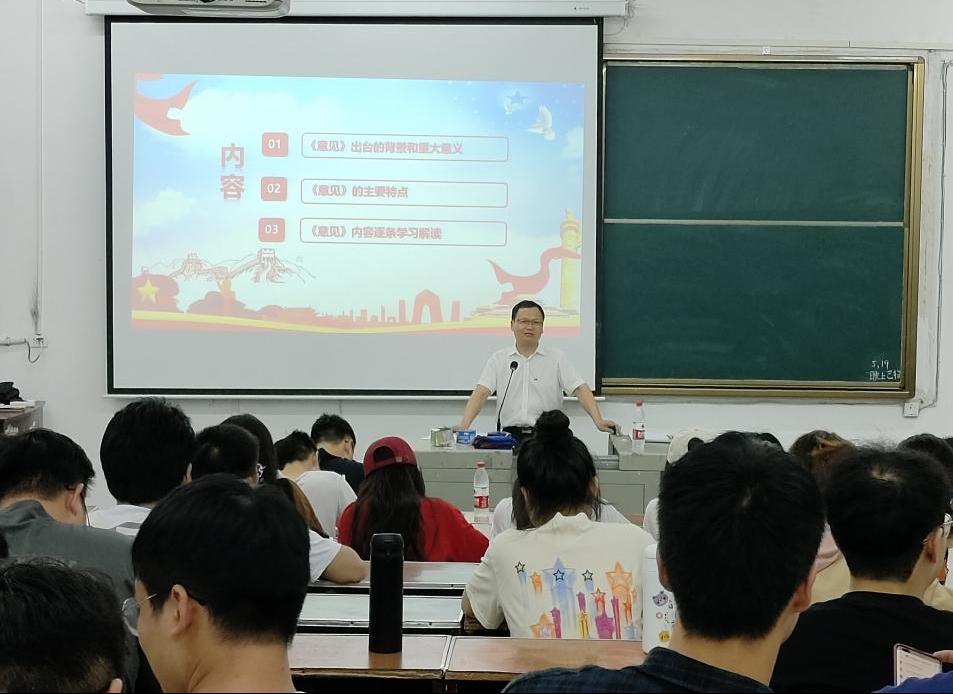 最后,赵魁轩书记对《意见》内容逐条学习解读,指出党员要坚定政治信仰,坚持党的政治领导,提高政治能力。他表示我院青年应积极参加“学党史”等活动,加强党章、党规学习,强化党性思维。