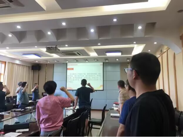 全体党员交纳党费并重温入党誓词,王亚华同志领学第二章党的组织制度第十七、十八条。