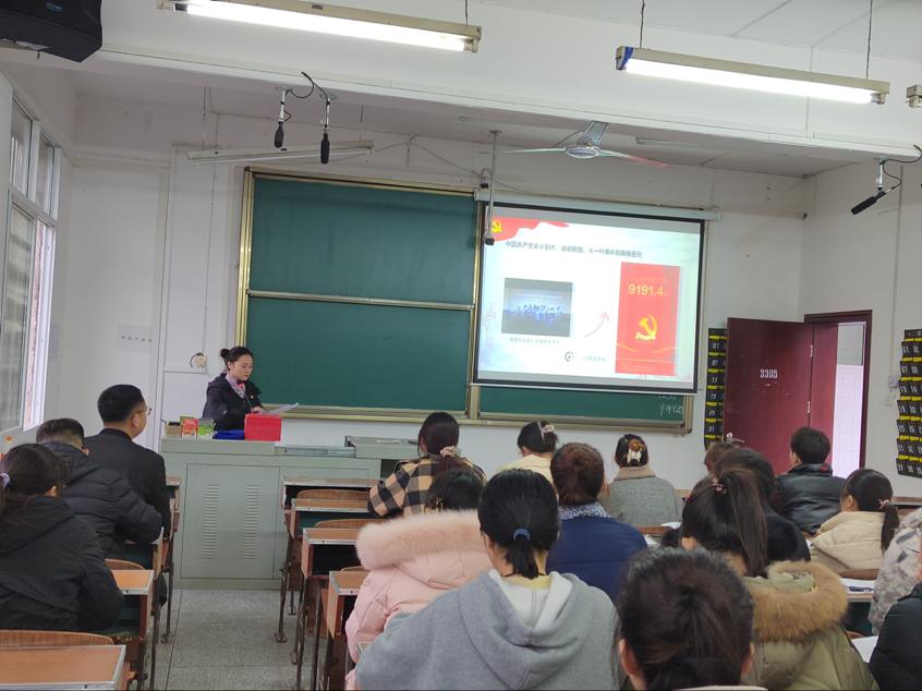 为深入开展党史学习教育,深刻铭记中国共产党百年奋斗的光辉历程,激励我院学生党员筑牢信仰之基,传承红色基因,牢记使初心使命,数学与统计学院学生党支部于12月16日开展党史学习教育活动。本次党课由学生支部党组织书记黄丽娜老师讲授,支部全体党员到场聆听。