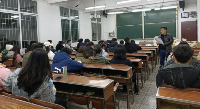 在2017级学生晚点名中,谭迪老师首先结合学院疫情防控形式,对学生外出请假管理做出规定。随后,对本学期学生各时间节点的学习规划进行阐明,并提及到毕业论文、毕业绩点、就业与择业等与毕业生息息相关的一系列问题,表示同学们要结合自身实际和行业形势,强调“先就业再择业”这一观点。同时对即将进行国考和省考的同学表示鼓励,并以“厚德载物,天道酬勤”来勉励他们做好准备,全力以赴。