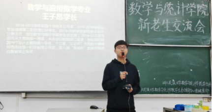 首先,由2018级数学与应用数学专业学生代表王子昂发言。他建议刚步入大学的新生们,应尽快调整心态,适应大学生活节奏。同时,他表明在理想和现实之间不仅要给自己一个准确的定位,而且要深入学习大学必修课知识、拓宽专业课知识面。