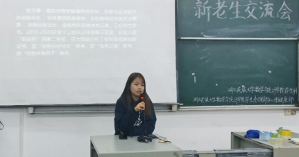 最后,由2018级信息与计算科学专业学生代表陈姗姗进行发言。她向大家讲述自己的学习、工作经历,希望大家能在大学提升自我,进而实现自我价值。此外,陈姗姗学姐还分享了自己“三个要”的学习方法。第一个“要”课前预习课本,第二“要”课上专注,第三“要”课后进行回顾复习。然后,她以“态度决定一切,思路决定出路,细节决定成败”作结。