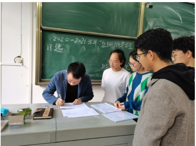 会议之前,两位同学均提前准备好相关材料及证明,确保内容的真实性。会议开始,刘聪老师针对每一项加分项目找到相应材料,根据《365电子娱乐官方网站普通本科学生奖学金评定及奖励办法》、《“红珊瑚基金”管理办法》等相关文件要求严格按照“红珊瑚奖学金”评审细则对参与评选的两位同学进行得分量化考核,按照相关规定进行统分,随后进行全院公示。