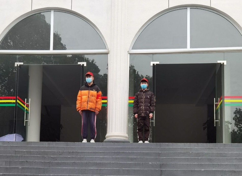 在交谈过程中我们了解到他们一天的工作是从7:30到15:50,由12名同学轮流站岗进行。当两名志愿者被问道今天看到没带口罩的同学多不多时,他们表示在站岗过程中,只有极少数同学在没带口罩,并且这些同学在提醒之后能够做到积极配合,将口罩立刻戴上。