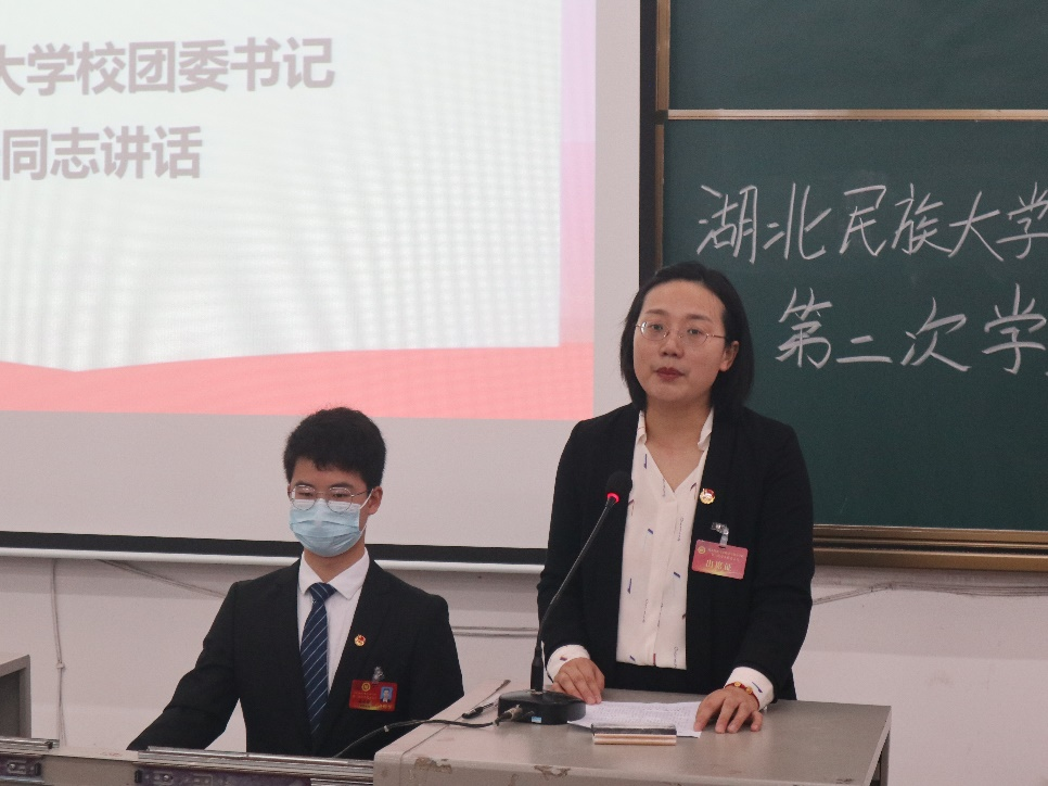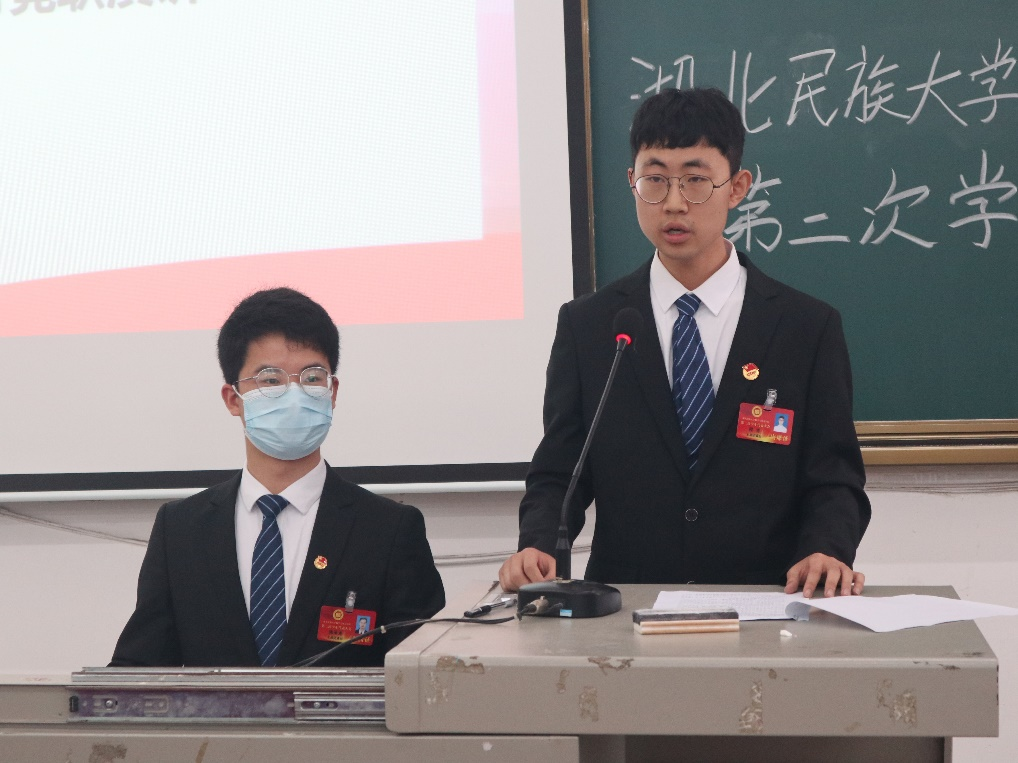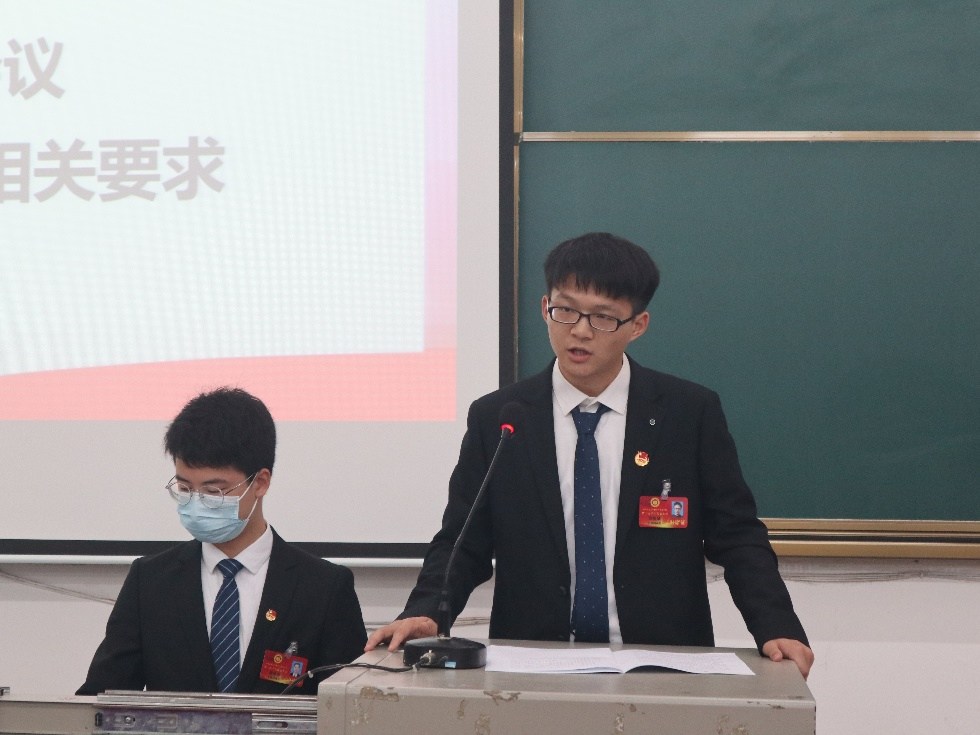 我院学生会主席团执行主席刘旭威作以《奋进新征程,建功新时代——带领全院青年学生不负韶华,用坚苦奋斗书写青春华章》为主题的工作报告。