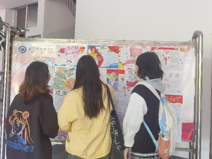 最后,工作人员于5月5日将相关优秀作品在学院门口进行展板展示,许多师生均前往欣赏并交流体会,活动取得良好的效果。