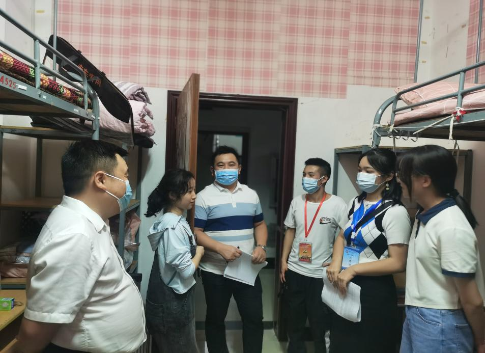 随后,学生干部对新生开学第一周上网课以及就餐等方面进行说明与安排,并对各寝室学生到校情况进行考察。走访即将结束时,老师提醒同学们刚来到学校一定要注意人身财产安全,加强疫情防控。